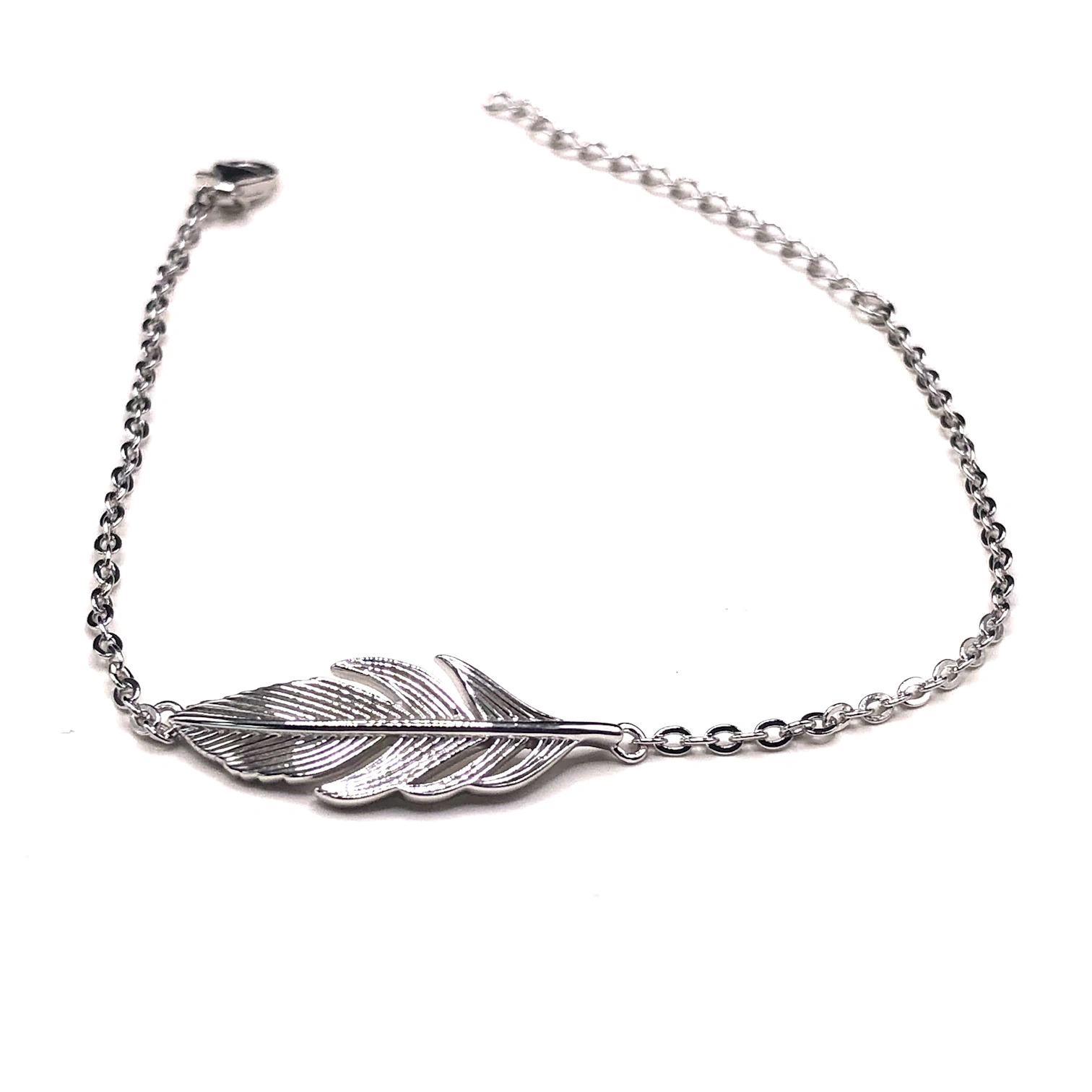 • 925 Sterling Silver Feather Bracelet – Adjustable