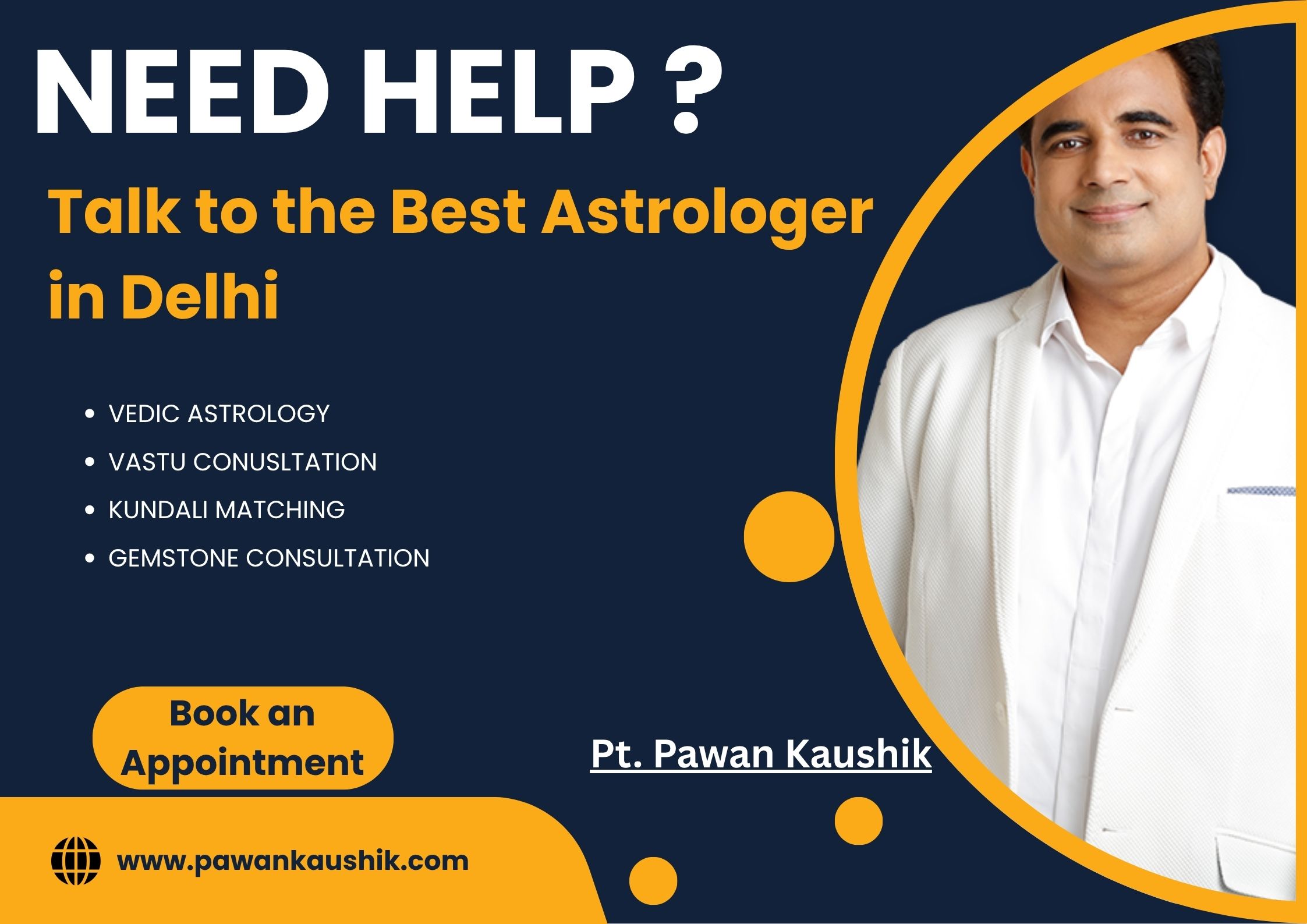 Don’tstay confused—Pt. Pawan Kaushik, the best astrologerin Delhi NCR, is here to help. Whether you’re facing job stress, loveissues, or health worries, he can guide you with easy-to-understand advice. Hereads your stars and tells you what to do next. His way of talking is simpleand friendly, like someone who really wants to help you.